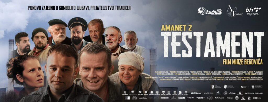 Testament je srdačna i duhovita porodična komedija koja nastavlja priču filma Amanet. Bez nasilja i vulgarnosti, film kreativno prikazuje međugeneracijske veze, tradiciju i humor kroz priču koja je bliska publici Balkana diljem Evrope. Nakon uspješne premijere u BiH i snažne pretprodaje, film će se prikazivati u preko 65 gradova i više od 150 projekcija u kinima velikih europskih lanaca.